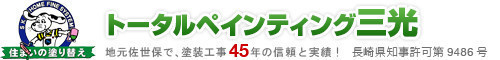 外壁塗装の専門のトータルペインティング三光。屋根、外壁塗装から防水工事まで。地元佐世保で、塗装工事45年の実績!